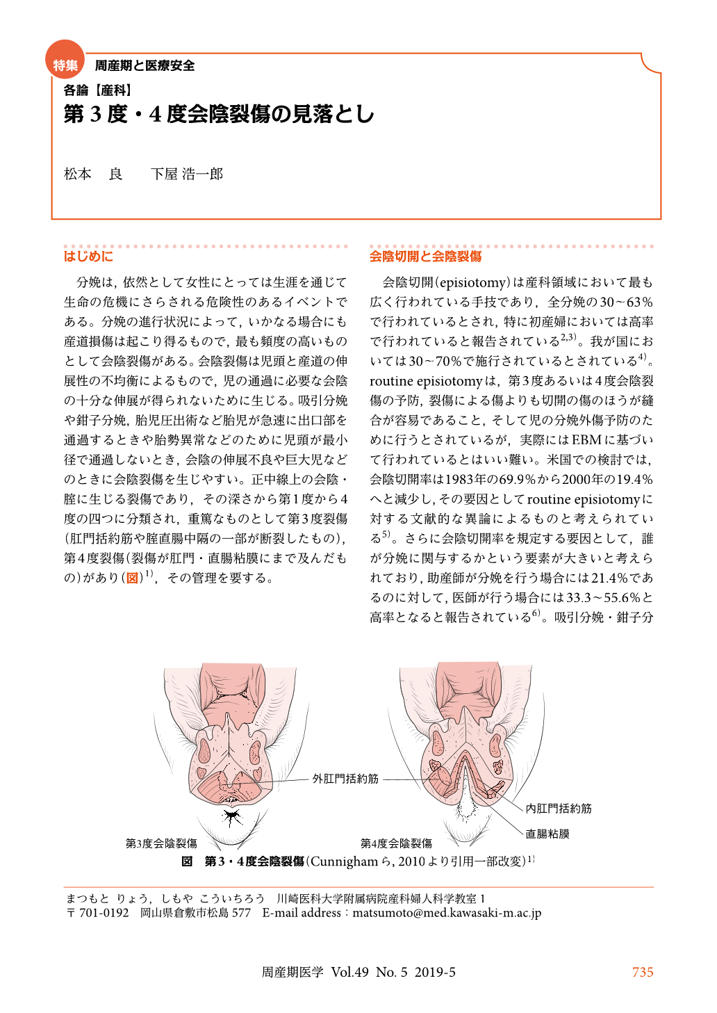 3度,4度会陰裂傷における注意点周産期医学 53巻6号医書.jp。