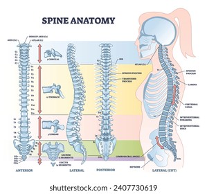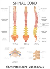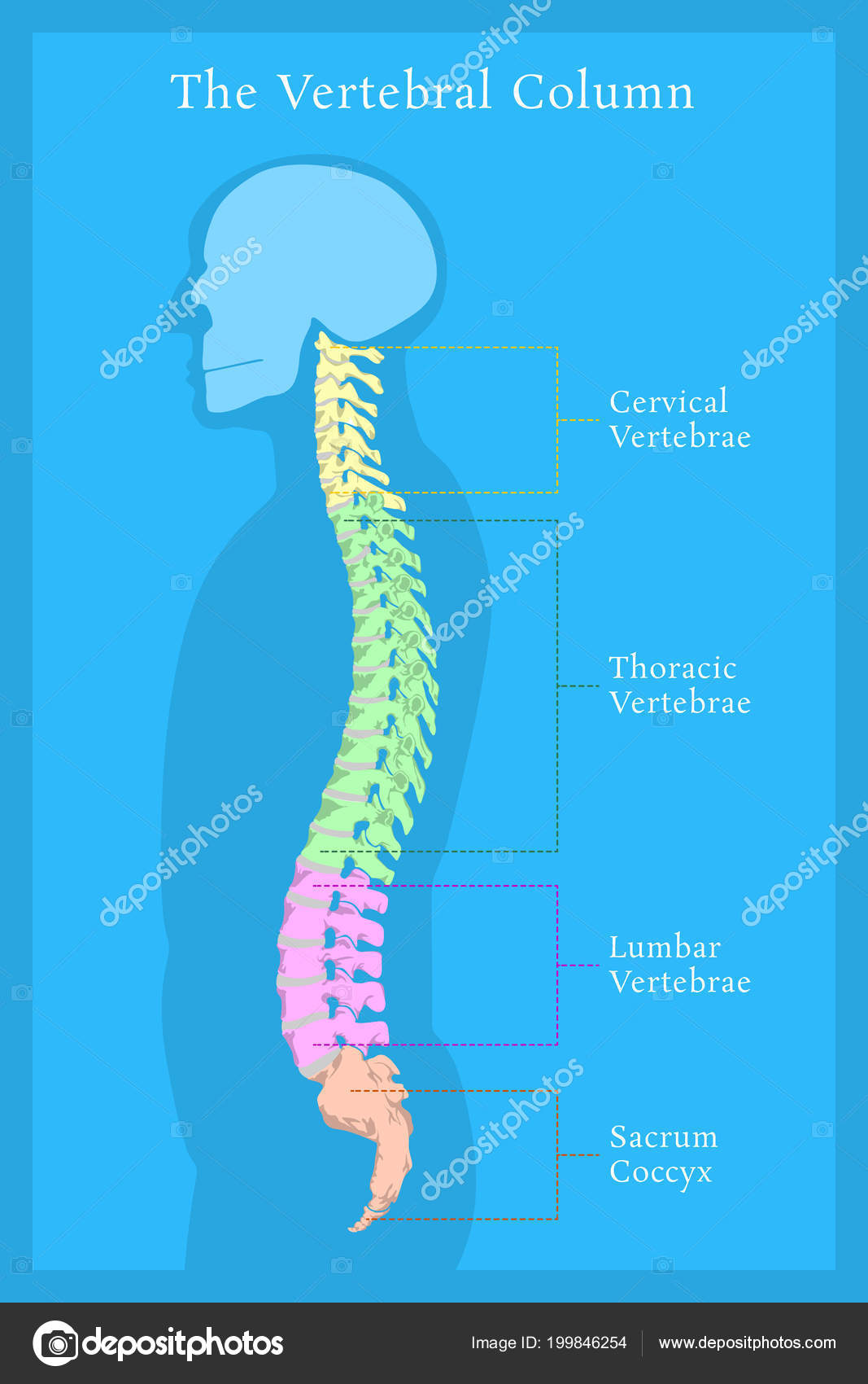 人間の体の解剖学の脊柱 Infograpic 図などすべて椎骨子宮頸胸腰椎仙骨と尾骨の医学教育と医療のイラスト素材・ベクター Image87963505。