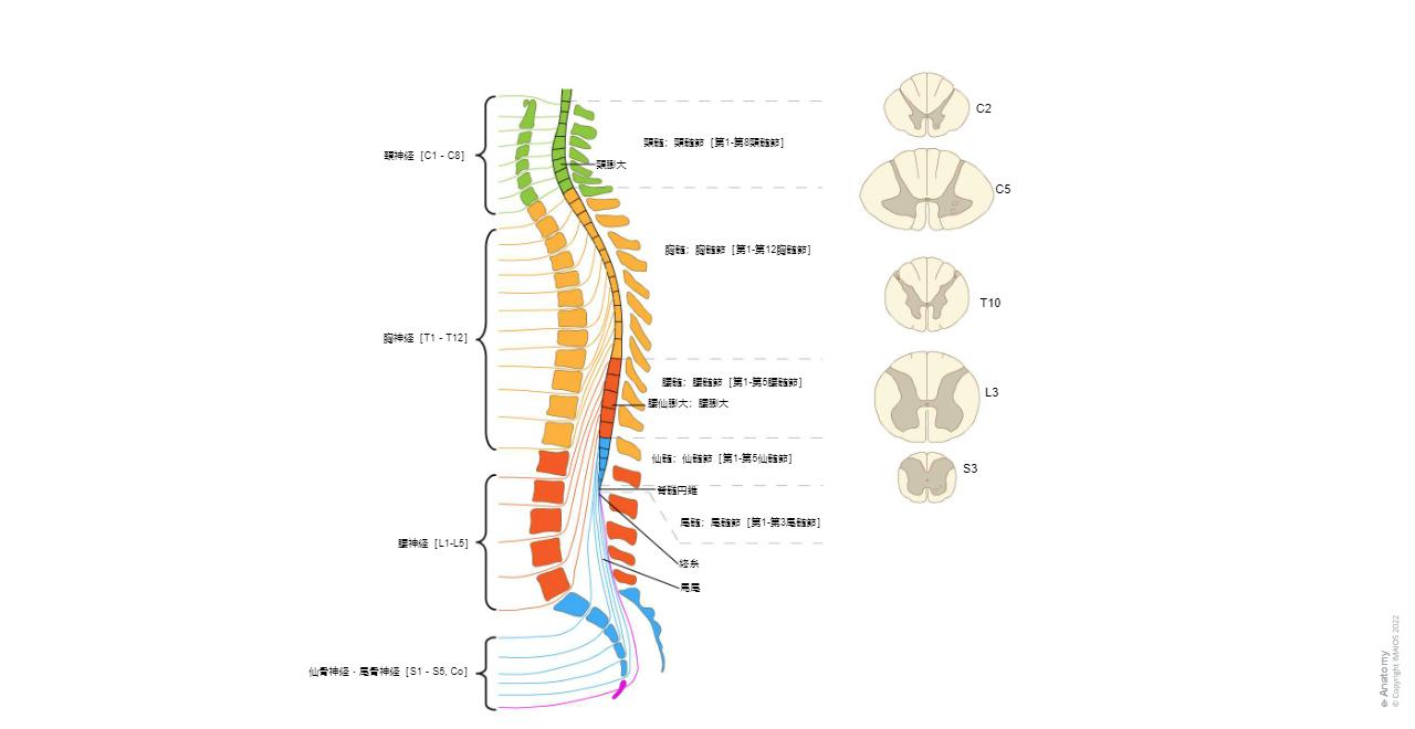 脊髄の断面 - 医療のイラスト・写真・動画、素材販売サイトのメディック medick。
