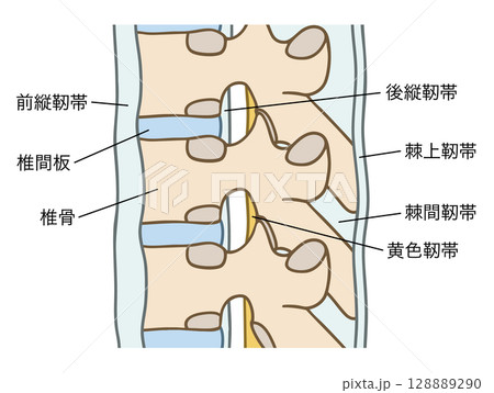 脊椎を支える靭帯の説明図のイラスト素材128889290- PIXTA。