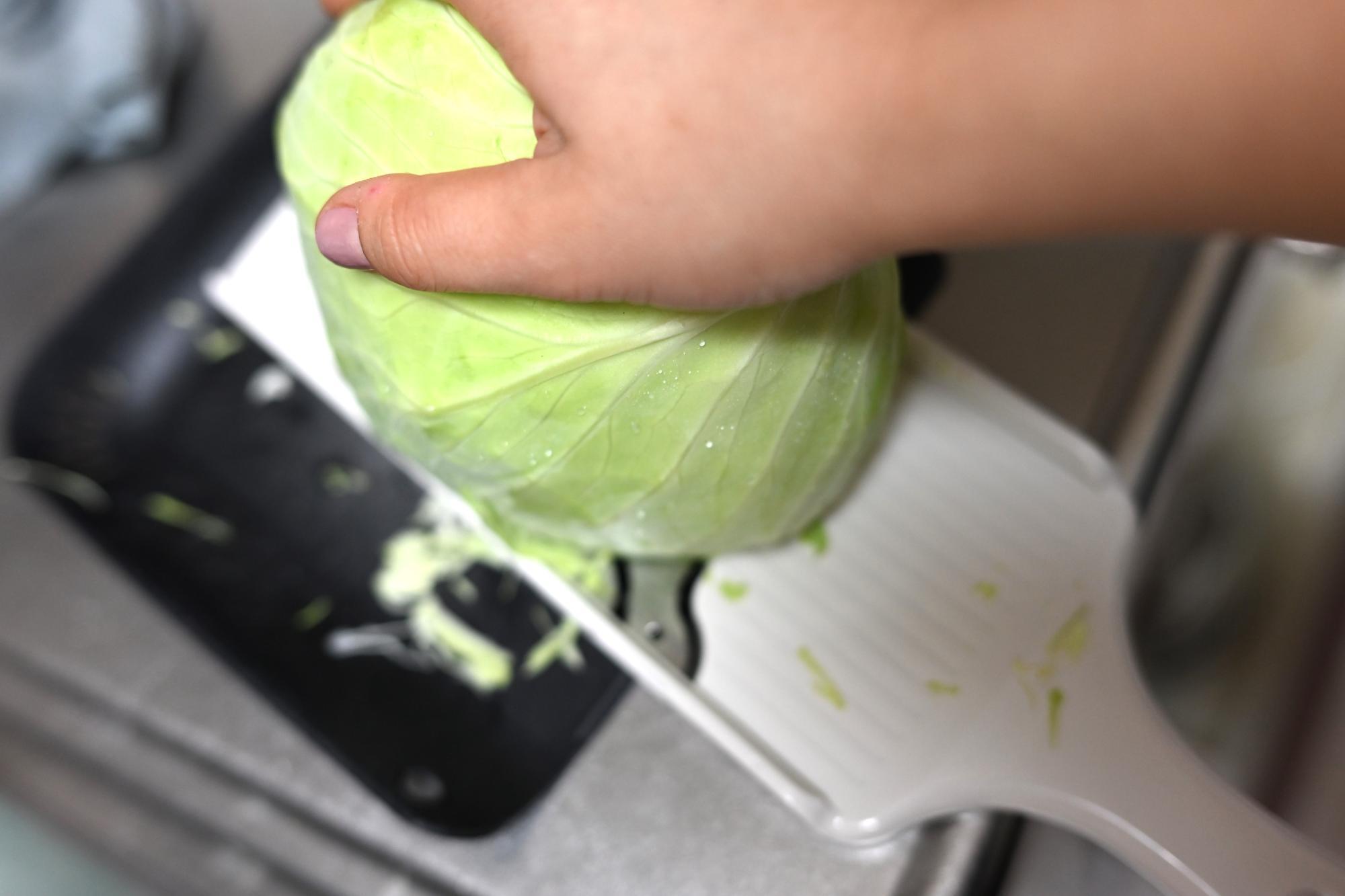 スライサーで誰でもできるふわふわ千切りキャベツの作り方 - いちたどん.com。