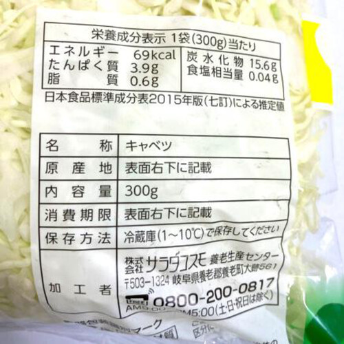 サラダコスモ 千切りキャベツ 300g Green Beansグリーンビーンズ by AEON。