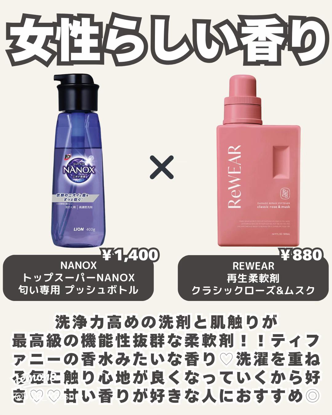 𓂃̨室長さん on X: "生乾き臭って何?ってなるぐらい洗濯物がいい匂いに包まれる最強の組み合わせはこれ。色々試したけどこれが1番ニオイに効果ある。洗剤はナノックスの紫。柔軟剤はソフランのアロマソープ。 それぞれ単体で使って物足りなかった人もこれ試してみて。