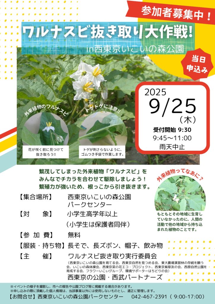 ワルナスビ抜き取り大作戦!@いこいの森いこいの森と周辺の市立公園。