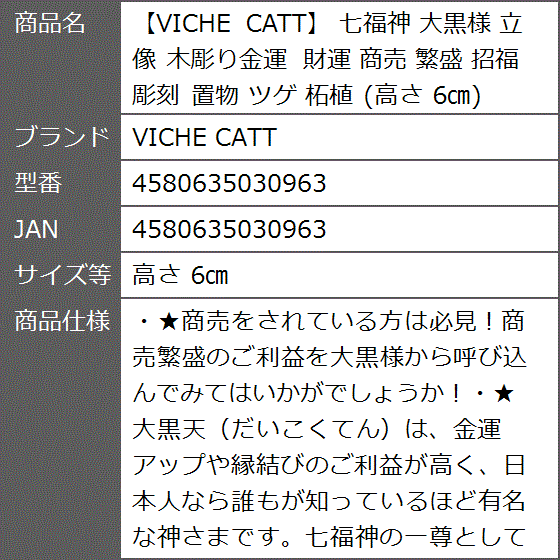 Amazon.co.jp: VICHE CATT 七福神 大黒様 立像 木彫り金運 開運 財運 商売 繁盛 招福 彫刻 置物 ツゲ 柘植高さ6㎝金色タイプ: ホーム&キッチン。