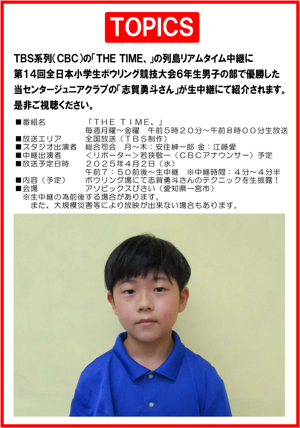 TBS系列 CBC 生中継のお知らせアソビックスびさい。