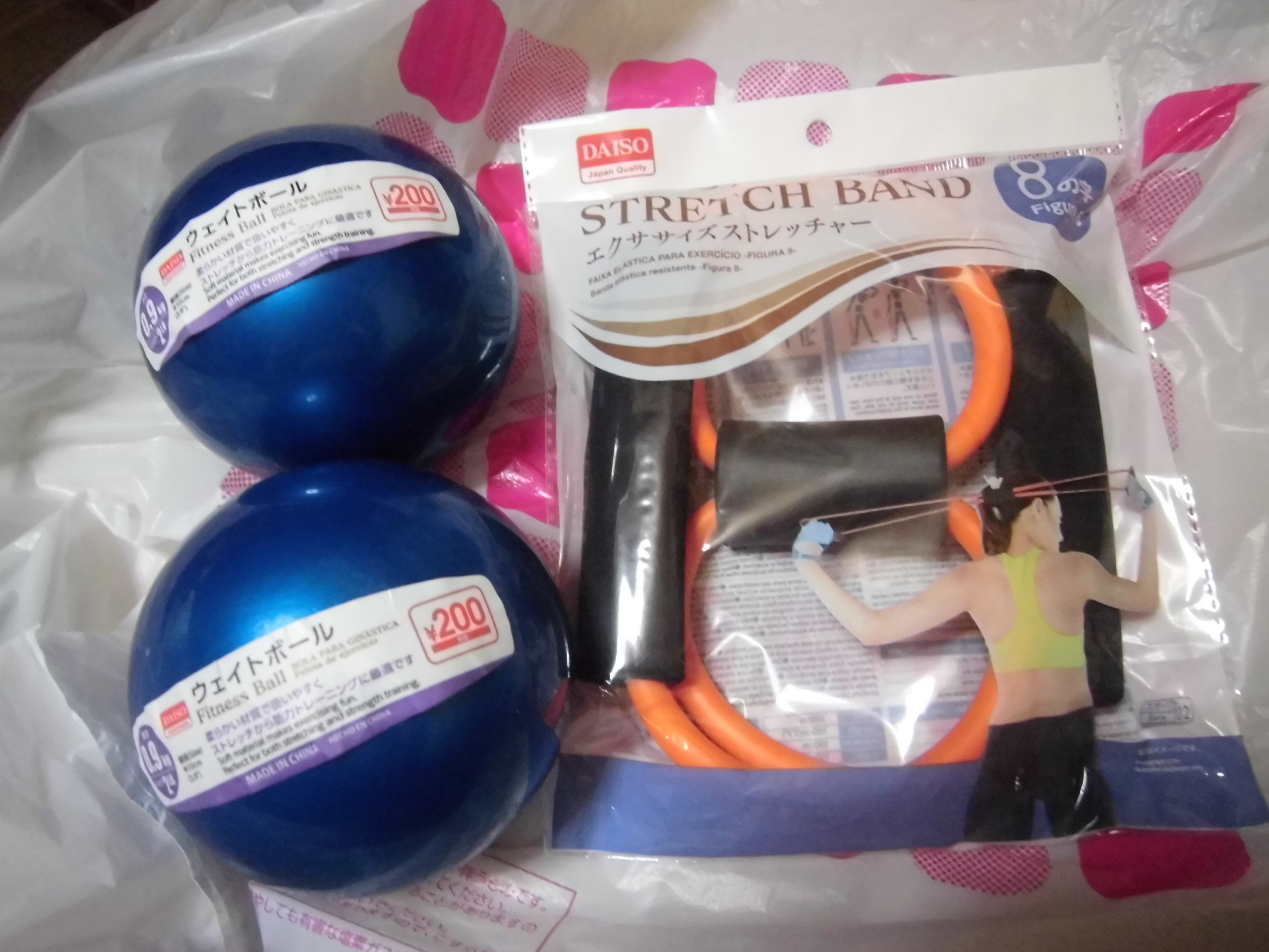 うさ🎗️ on X: "ダイソーでウエイトボールとエクササイズストレッチャー 8の字 を買ってみた。結構~筋トレできるかも!https:t.co qJW8zQp46u"X。