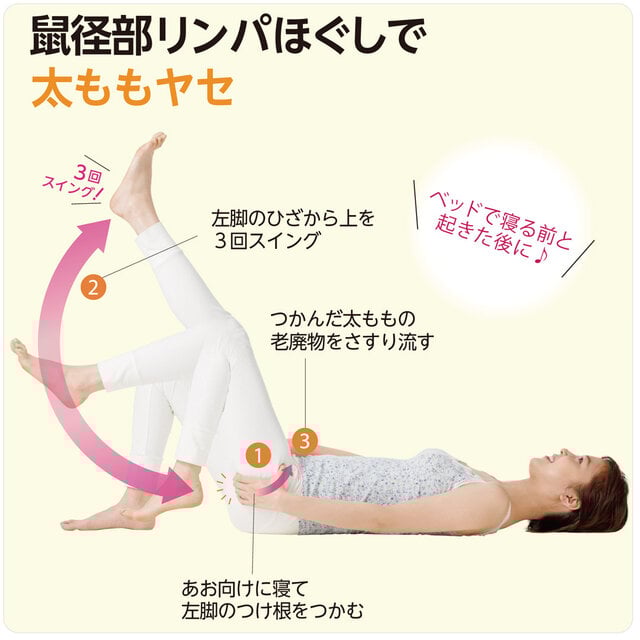 片足10回ずつ 足スッキリ!「鼠径部」のリンパの流れを促すストレッチ - 朝時間.jp。