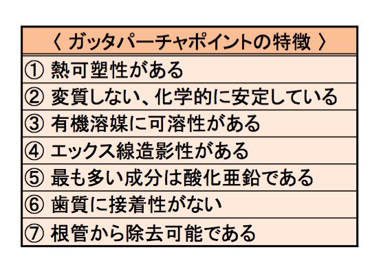 メディスタ 公式on X: "正解は③ 化学的に安定しているです < ガッタパーチャポイントの特徴 >https:t.co J1KZghf2uf"X。