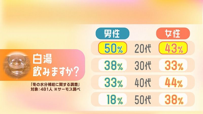 なぜ?「白湯男子」が急増中、20代男性「飲む」が50%、ペットボトル売れ行き「想定の3倍」 Nスタ解説TBS NEWS DIG フォトギャラリ。