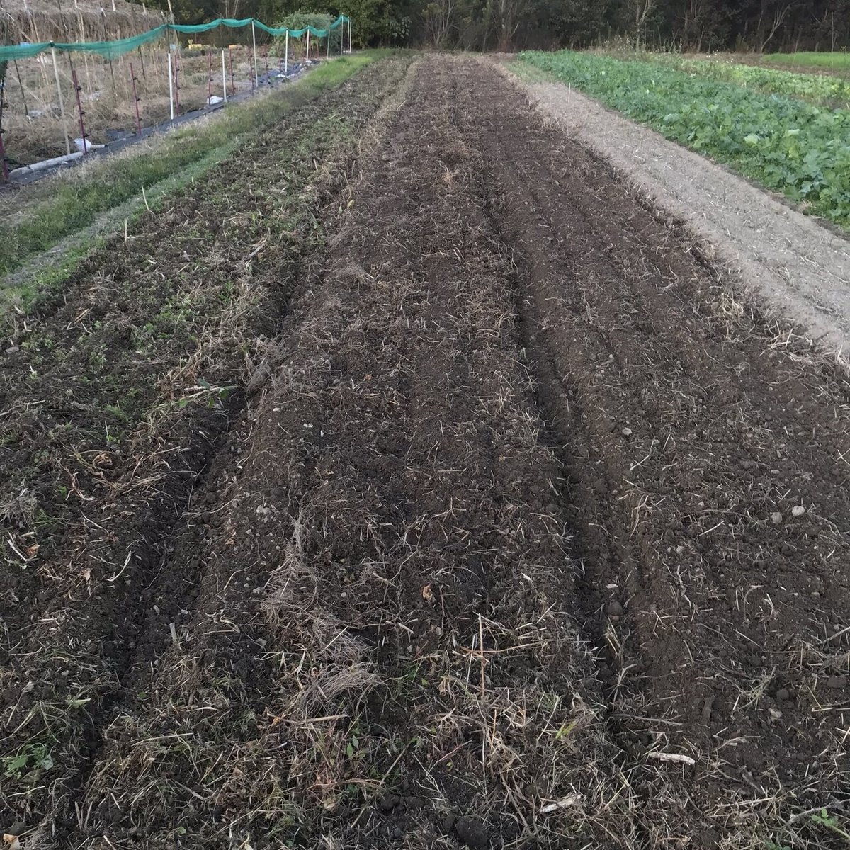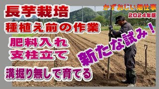長芋の種植え直前作業 肥料入れと畝立て 溝掘りをした場合:2024年版長芋栽培。