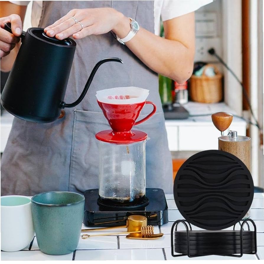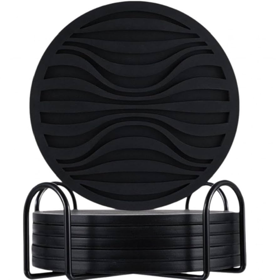 AmazonToivexa コースター コップマット パッド シリコン 滑り止め 水滴を受け止める 結露の水滴防止 テーブルウェア 収納棚付き10cm 円形 6個セット ブラックコースター オンライン通販。