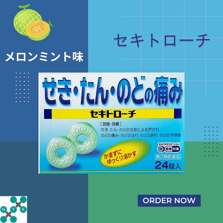 楽天市場公式セキトローチ 24錠 2個セット第2類医薬品ポスト投函 日新薬品工業せき止め 咳止め 喉の痛み のどの痛み たんトローチ 殺菌 メロンミント味 CPC 配合 口臭 非麻薬 子供 大人 セキ とろーち のど飴 のどあめ 喉飴 業務用 咳エチケット 携帯。
