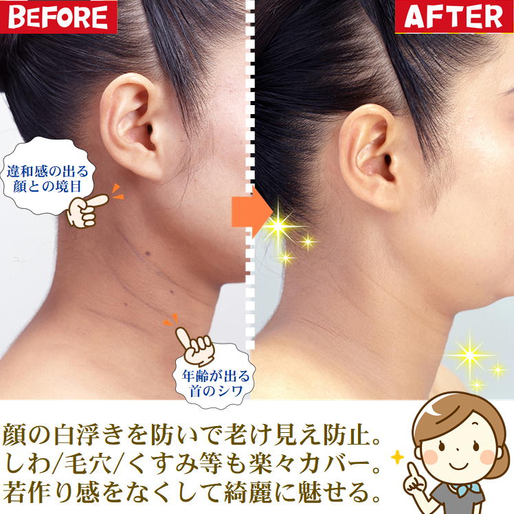 楽天市場 シワ隠し 首 日焼け対策 首用ファデ ボディ用ファンデーション 服に付かないトミーリッチ くびすじファンデ コスメ デコルテうなじ首のシワ クリーム リキッドファンデ 白浮き 老け見え 対策 便利グッズ 首の色 白くする 母親 誕生日プレゼント 母の日。