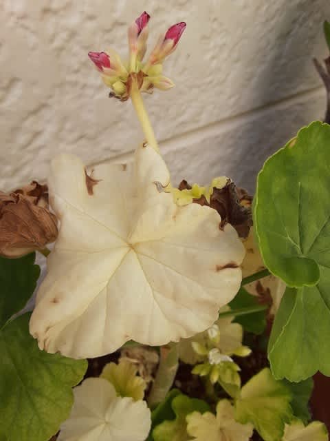 ゼラニウムが高温障害で白い葉に: 青山〜チトフナぱせり日記。