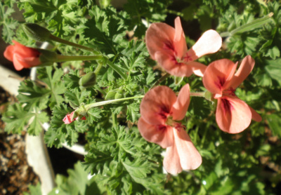 ゼラニウム、暑さ負け: 見て、触って、香りを嗅ぐ。