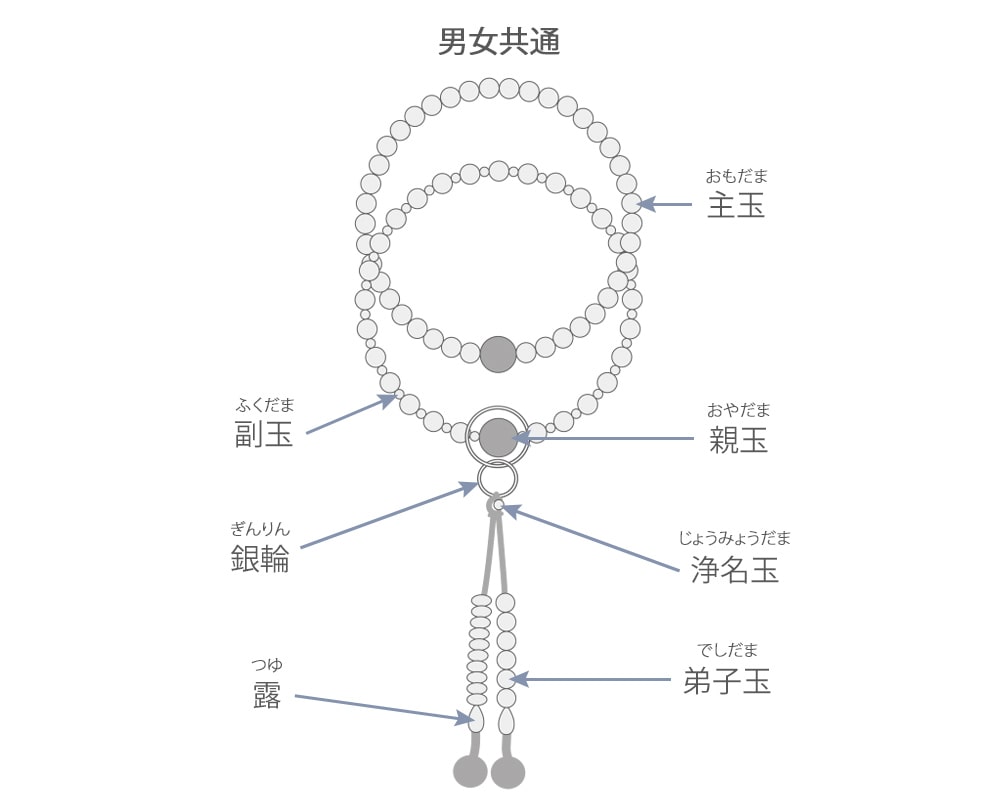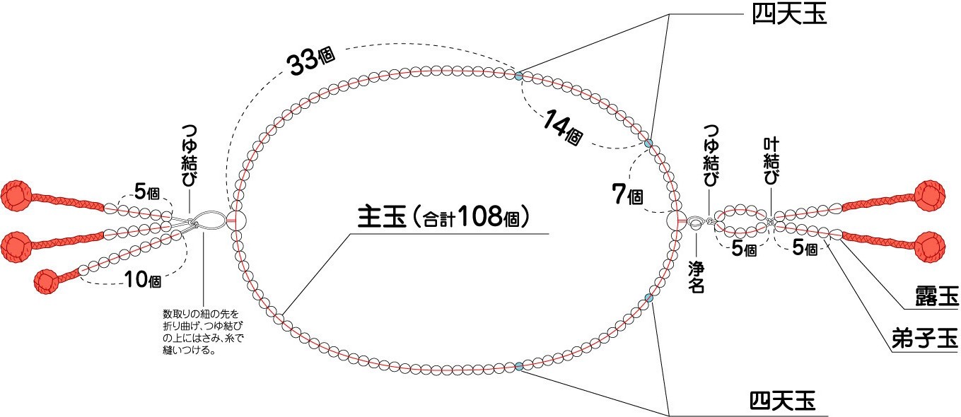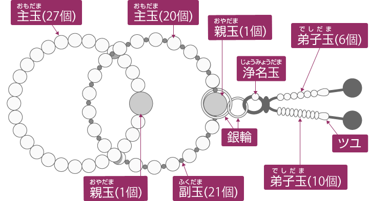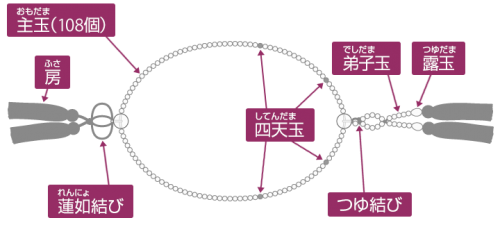 数珠、念珠の各部の名称宗派別念珠一覧、房の種類、玉の名称 数珠の専門店 亀屋。