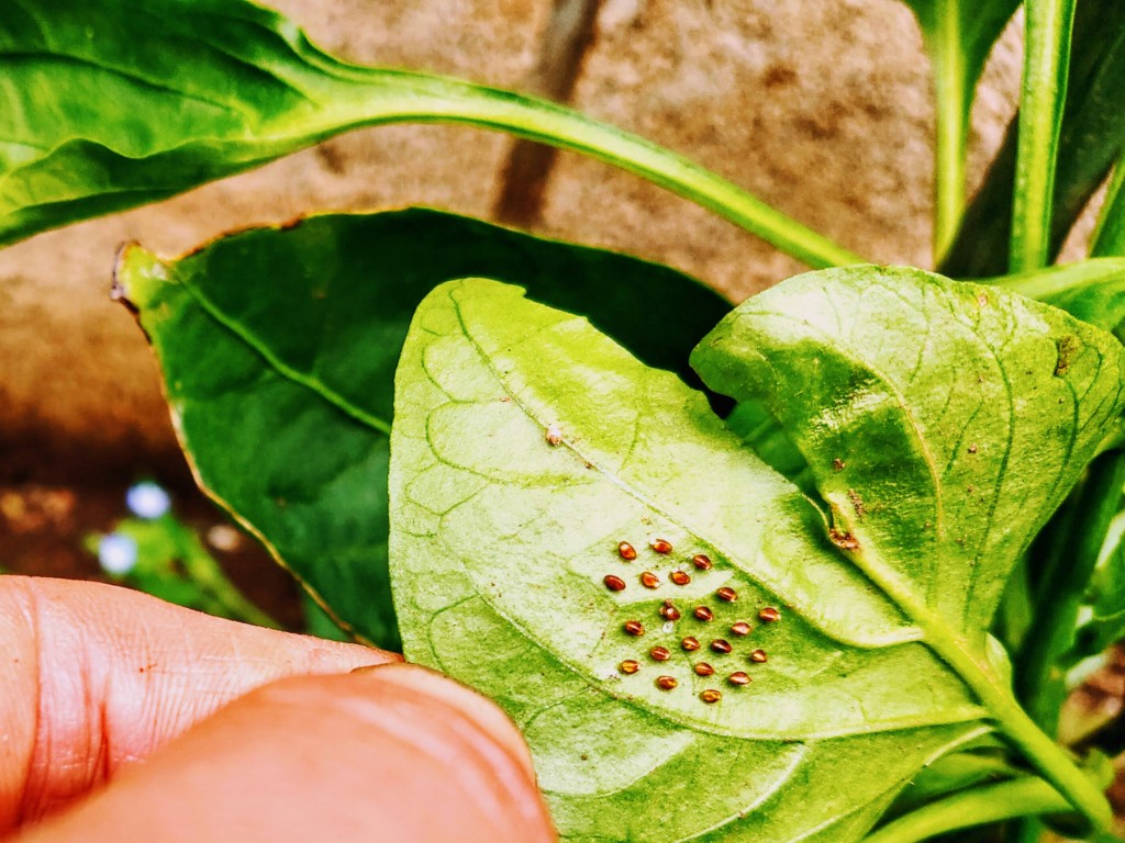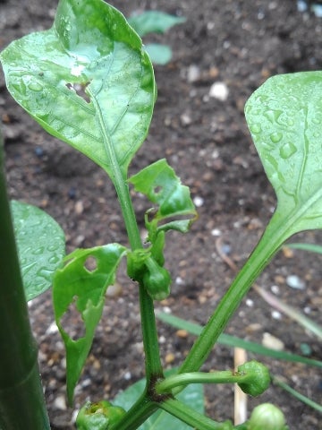 ピーマンの被害、我慢できなくて害虫予防スプレーを使うなべさんの出来事。