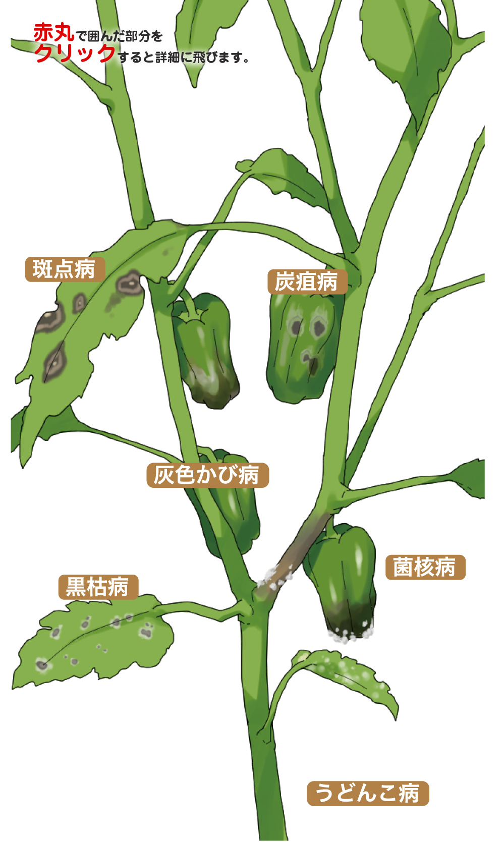 ピーマン・トウガラシ類の病気と害虫症状の特徴と防除方法やまむファーム。