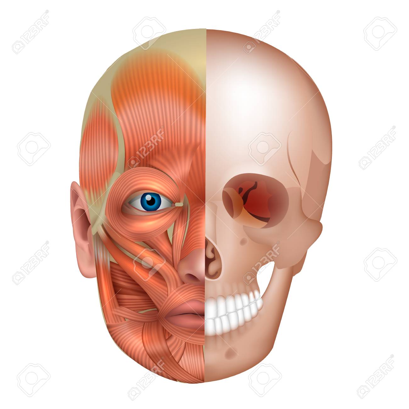 顔の筋肉や骨の詳細な白い背景に分離された明るい解剖学 ストックベクター ©megija 180778010。