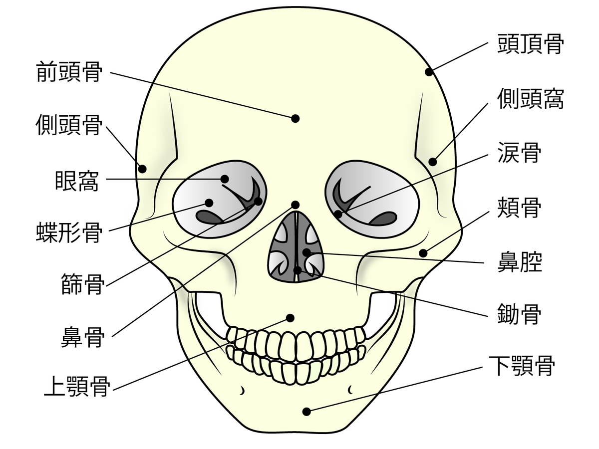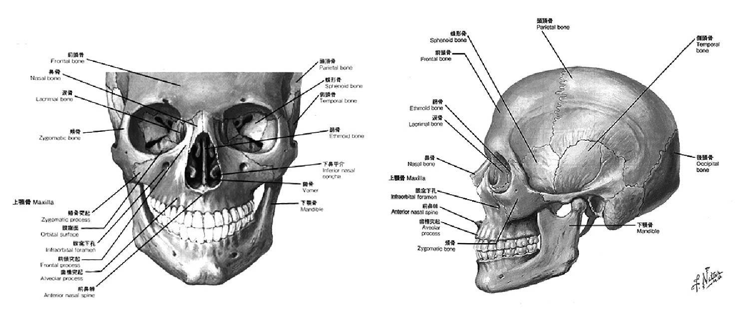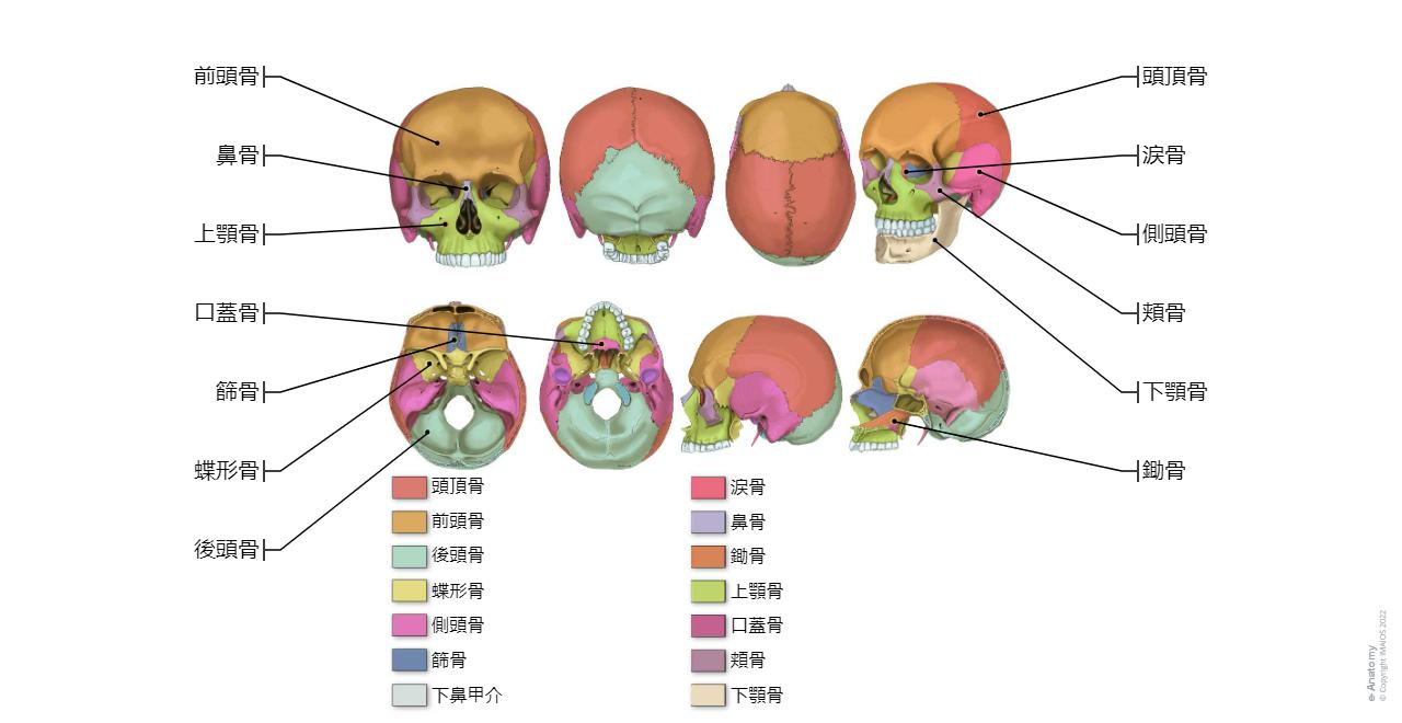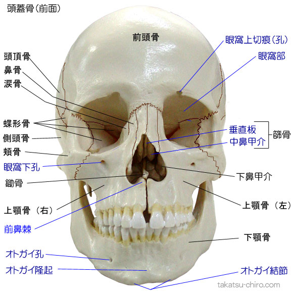 全身の骨格 - 頭蓋骨 顔面頭蓋- 名古屋市西区の椎間板ヘルニア・腰痛整体 AandK Therapy Studio。