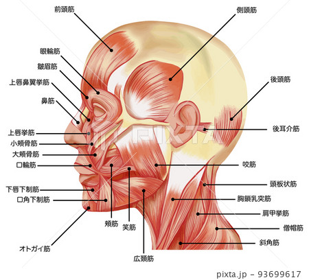 左半分が筋肉解剖図の女性の顔正面アップのイラストのイラスト素材107658539- PIXTA。