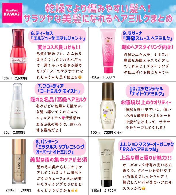 プチプラ ヘアミルクおすすめ11選!細い髪やくせ毛の方が使いやすいアイテムもご紹介クラシル比較。