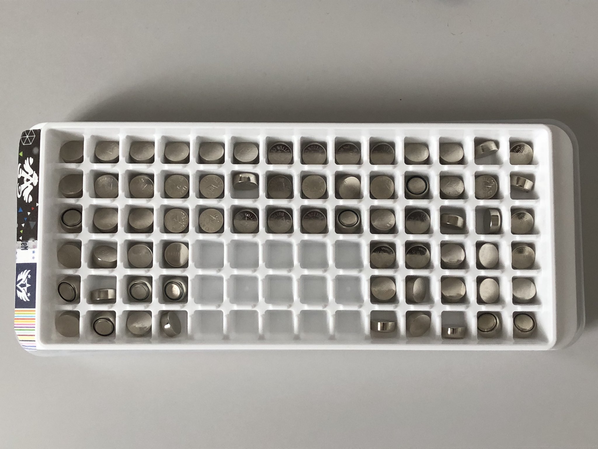 あやいず👁🗨 on X: "休眠中のペンライトから取り出したボタン電池の保管、小粒製氷トレーがしっくりきたのでこれでいきます。LR44がぴったりhttps:t.co lKBWcWqgd4"X。