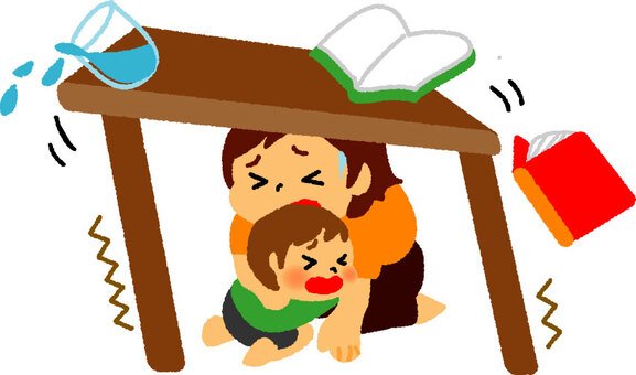 地震のイラスト「テーブルの下に避難」かわいいフリー素材集 いらすとや。
