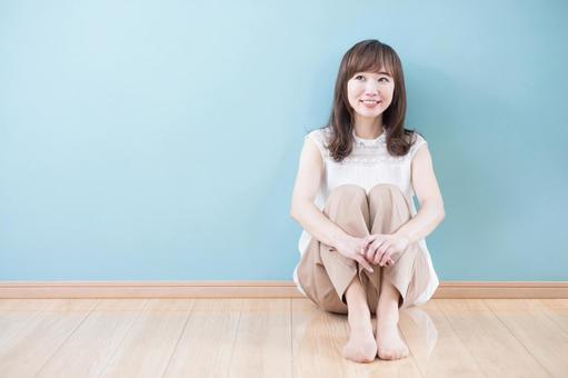 フローリングの上で足を投げ出す女性3人 11014025361 の写真・イラスト素材アマナイメージズ。