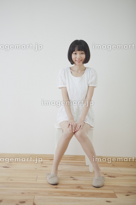 足を組んで椅子に座る日本人女性15931175 の写真素材 - アフロ。