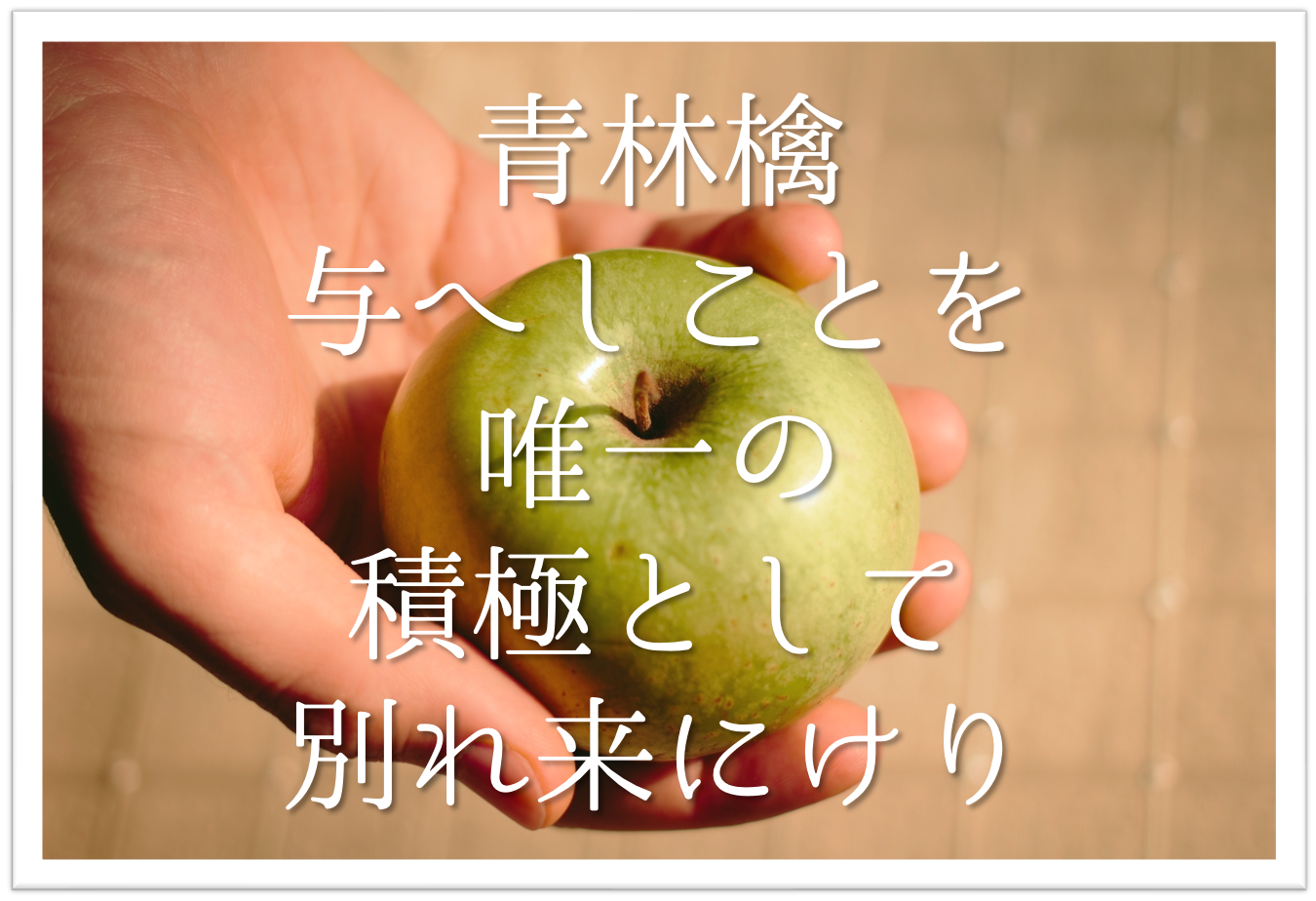 青林檎与へしことを唯一の積極として別れ来にけり 徹底解説!!意味や表現技法・句切れ・鑑賞文など短歌の教科書短歌の作り方・有名短歌の解説サイト。