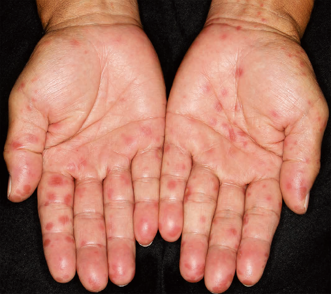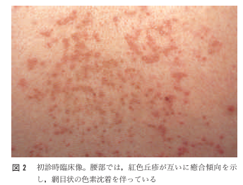 43歳女性。体幹の痒みを伴う紅色丘疹と色素斑:Cadetto.jp。