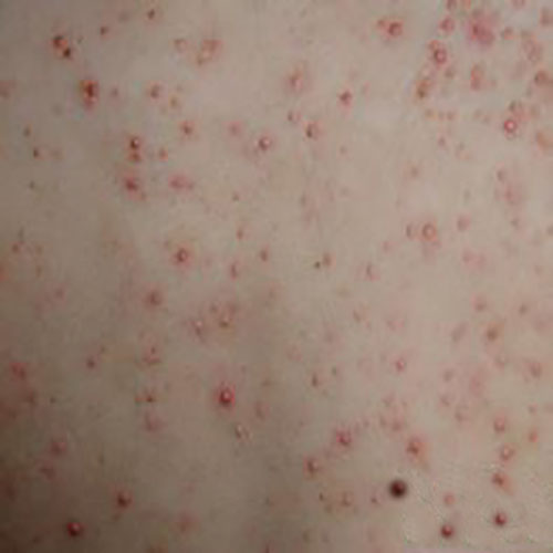 9歳男児。鱗屑・痂皮を伴う赤褐色の小丘疹:Cadetto.jp。