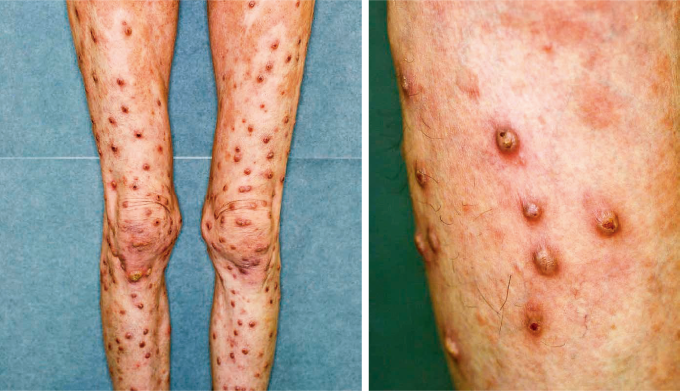 76歳女性。体幹・四肢の丘疹と結節:Cadetto.jp。
