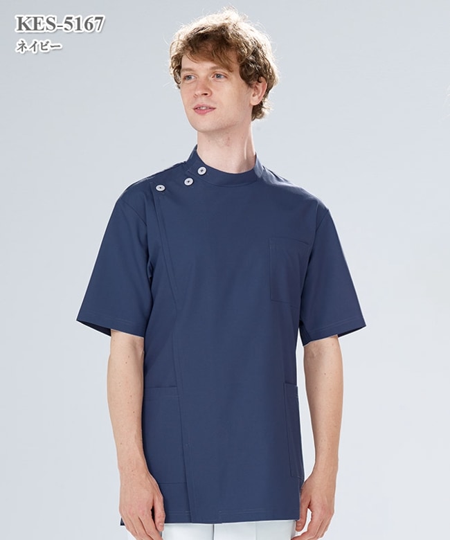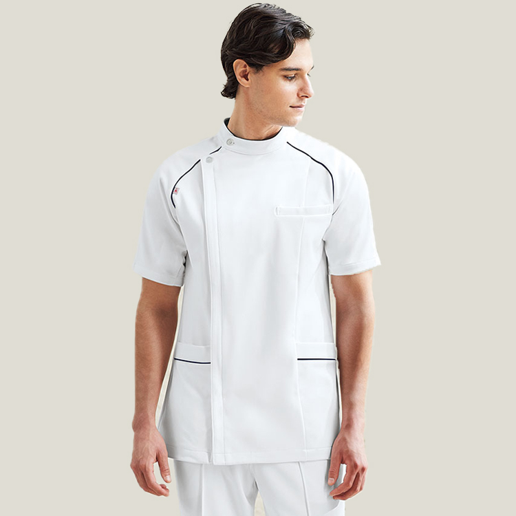 ケーシー 白衣 ジャケット MJAM-1803 メンズ 男性用 サーヴォ Servo 半袖 医療用 上衣 医務衣 診察衣 病院 クリニック 整体 医療制服 ユニフォーム 医者 医師 看護師 ナース 横掛 おしゃれ かっこいい 動きやすい ファスナーまもる君 医療ユニフォーム専門店。