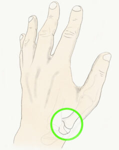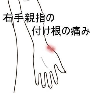 右親指付け根が手を着いたり、パンチを打つと痛む手首痛のツボツボネット 鍼灸の症例が検索できるツボ辞典。
