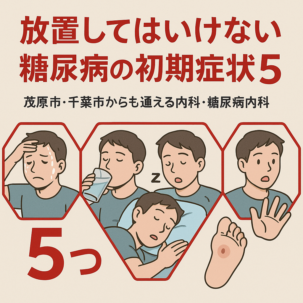 糖尿病の初期症状5つ茂原市・千葉市・東金市からも通える内科・糖尿病内科千葉県長生郡長生村のあまが台ファミリークリニック 内科 小児科 皮膚科糖尿病内科 健康診断 予防接種。