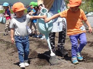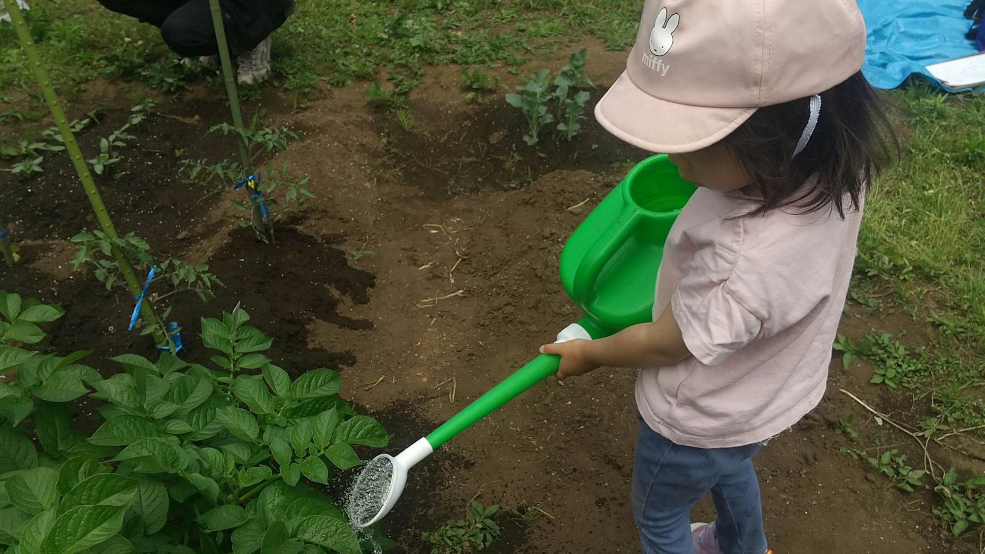 じゃがいもの栽培日記~水やり~子育て支援のブログ ひよこのゆめひよこグループ。