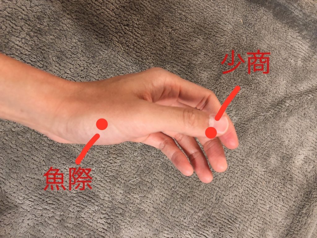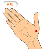 つぼ博士のツボ講座:喉の痛み、乾燥を緩和するツボ「魚際 ぎょさい 」訪問マッサージならレイス治療院。