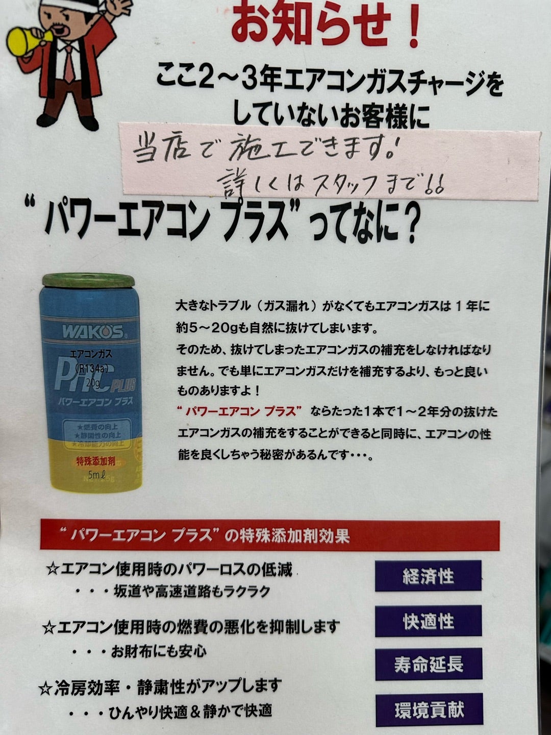 夏オススメ WAKO'Sパワーエアコンプラス リキッド あります!!店舗おススメ情報タイヤ館 磯子 神奈川県。