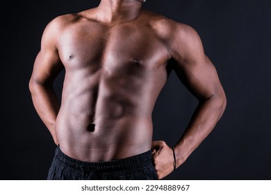 定義された筋肉を持つ黒人の筋肉質の男性は、腹部を腹筋,運動の決意と成功写真素材2294888967Shutterstock。