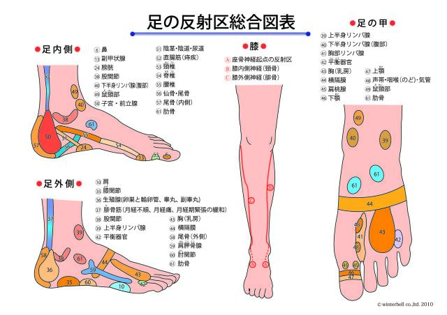 反射区図表ウインターベル健康ショップ 官足法の足つぼ治療・足裏マッサージ治療用健康器具。