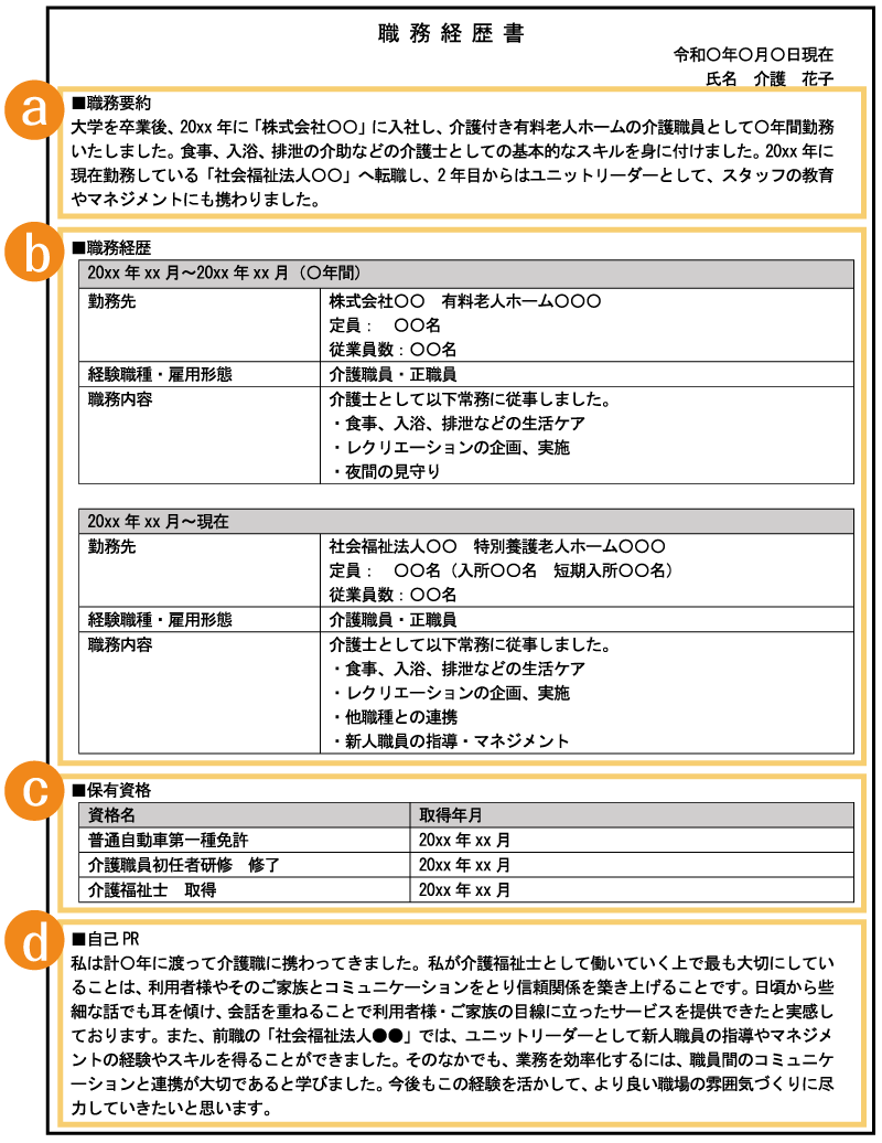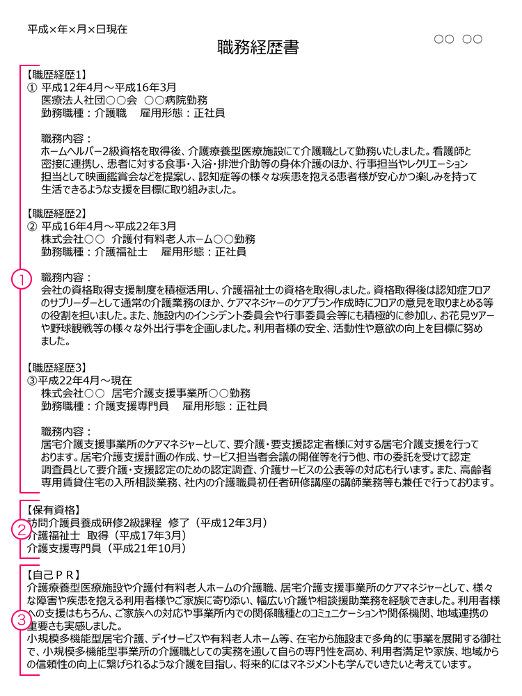 介護職の職務経歴書の書き方書類が通過しやすくなるポイントを解説 フォーマット・見本付リクルートエージェント。