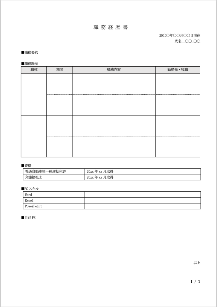 採用される介護の職務経歴書の書き方簡単に書ける見本とテンプレ付き - 介護の転職エージェント完全ガイド。