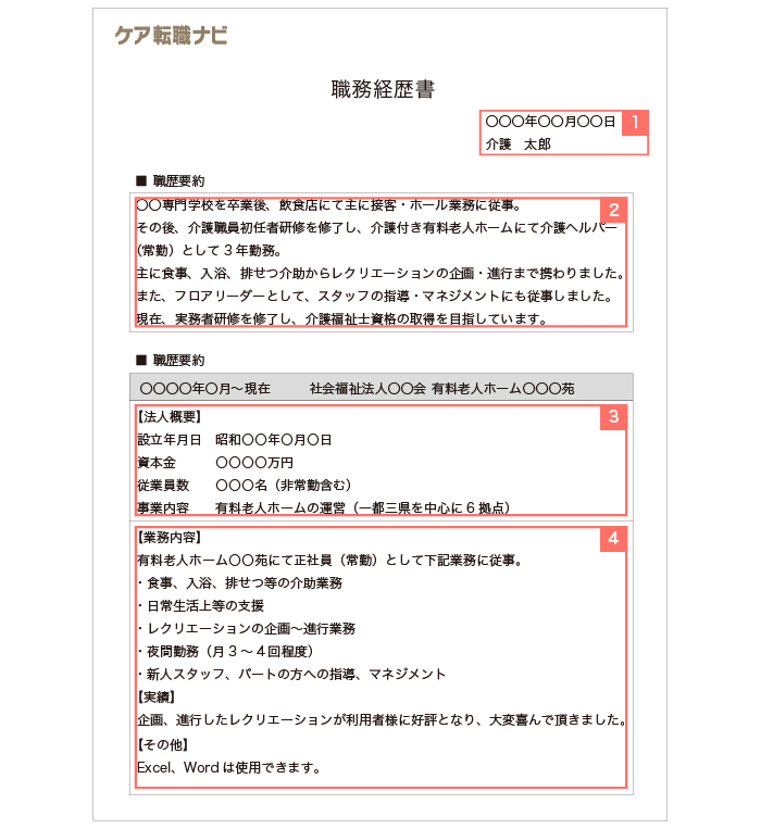 介護職の職務経歴書 好印象を与える書き方ポイント解説!見本有り 介護・医療の求人 転職は かいごGarden。