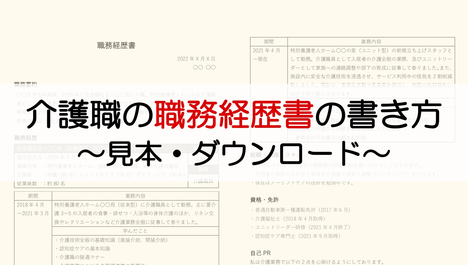 介護職 職務経歴書の書き方とポイント! 見本&無料ダウンロード。