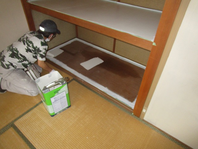 大阪市鶴見区にある集合住宅の空き家の押入れ 床 を塗装しました大阪で外壁・屋根塗装、防水工事なら街の外壁塗装やさん大阪生野店。