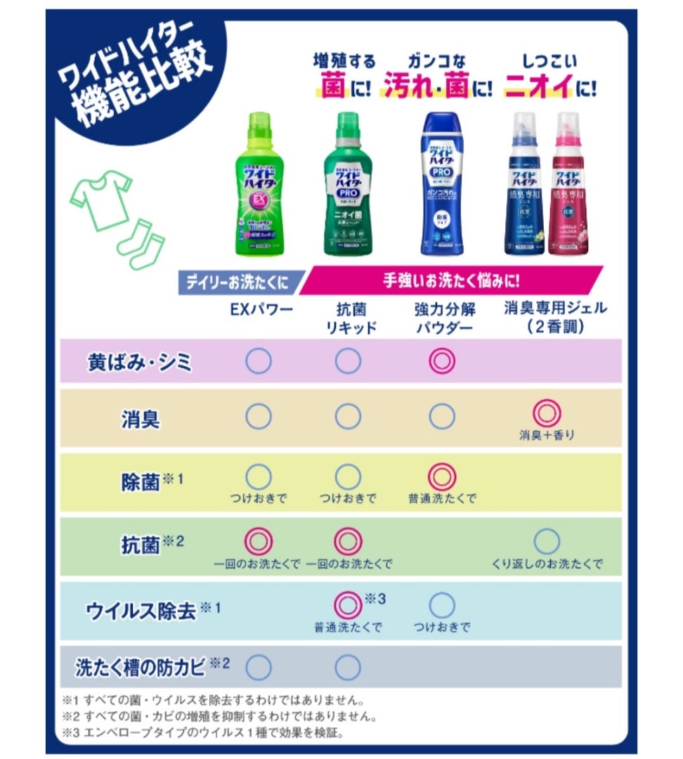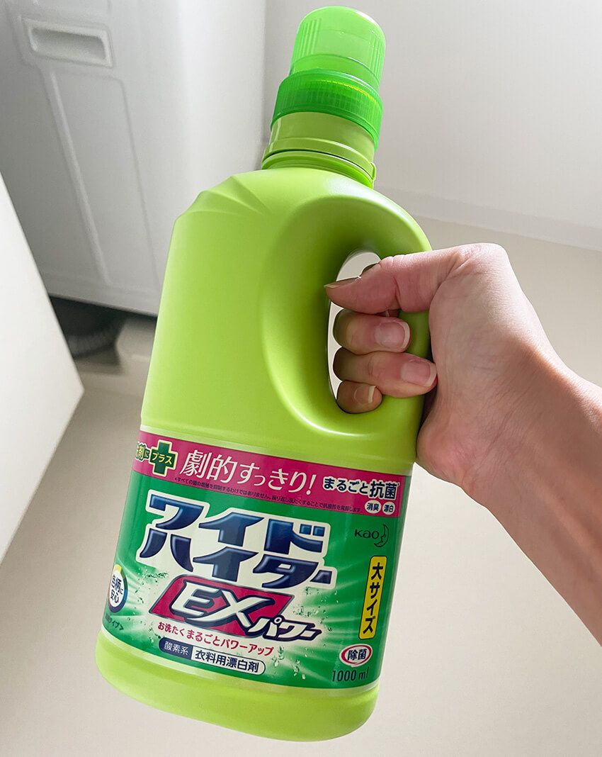 エリや枕カバーの黄ばみ、タオルの黒ずみの落とし方衣料用漂白剤 ワイドハイター花王。