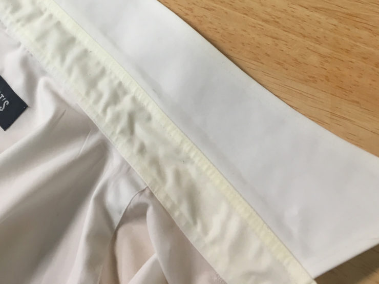 花王製品Q&A衣類変色 白いワイシャツを塩素系漂白剤の「ハイター」でつけ置き漂白したら、エリや袖口が黄色くなったのですが。
